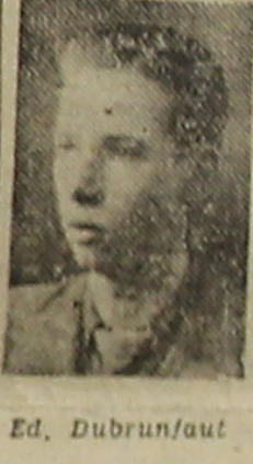 En ce mois d’août 1945, les leersois rendent hommage à la mémoire des résistants assassinés par les nazis. Une grande manifestation va être organisée par les Jeunesses Socialistes en hommage à Léon Wolf secrétaire de la section socialiste et Bernard Wolf secrétaire des Jeunesses Socialistes et de l’intercantonale de Roubaix, tous deux assassinés dans les bagnes nazis. Ils associent à cette manifestation Édouard Dubrunfaut des Jeunesses Socialistes de Leers dont on est encore à ce moment sans nouvelles. Ardent propagandiste du Parti Socialiste, résistant de la première heure, il fut arrêté par la Gestapo le 13 juillet 1943 en même temps que Pantigny, Wolf, Thiberghien (tous décédés depuis) Coquerel et Delabre. Il fut jeté en prison et odieusement torturé par les brutes nazies. Transféré dans divers camps, il a été vu la dernière fois en avril dernier à Buckenwald par Eugène Thomas. Des recherches entreprises par le Ministère des Déportés sont jusqu’alors demeurées vaines mais ses nombreux amis espèrent encore son retour.