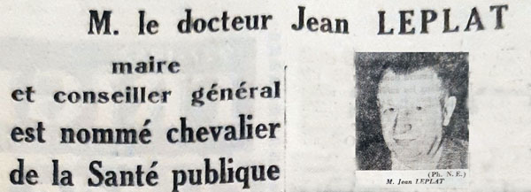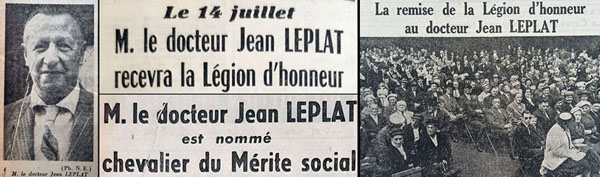 L’année suivante, au 14 juillet, Jean Leplat est nommé chevalier de la légion d’honneur. La remise de cette nouvelle distinction est réalisée par Louis Christiaens, député, ancien ministre et grand-croix de la Légion d’Honneur. Enfin il reçoit, en 1959, une nouvelle distinction en étant nommé Chevalier du Mérite Social.