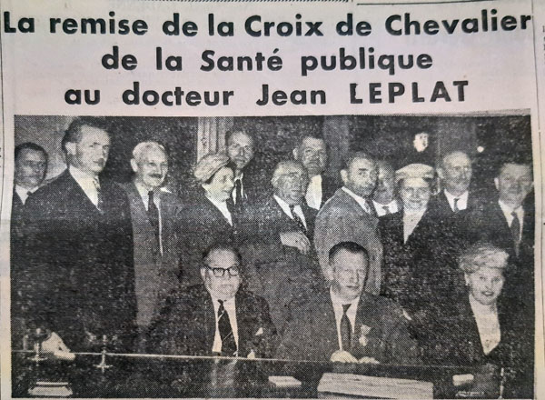 En 1957, la Croix de Chevalier de l’Ordre de la Santé Publique vient récompenser cette grande activité au service de la Communauté. A l’époque, le nouveau chevalier est déjà titulaire de la Croix de Chevalier de l’ordre des Palmes Académiques et de la médaille de vermeil de la gendarmerie pour services rendus.