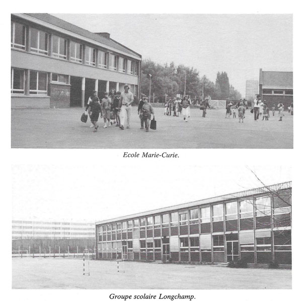 Les années 1960 voient apparaître un groupe scolaire dans le quartier des Hauts-Champs comprenant une école maternelle, 2 écoles primaires (une de filles et une de garçons, une cantine et une salle d’éducation physique commune, l’école Marie Curie, puis le groupe scolaire Longchamp regroupant 2 écoles primaires, une école maternelle et une cantine. La décennie est également celle de la construction du CES Albert Camus rue Jean Jaurès, inauguré en 1970.