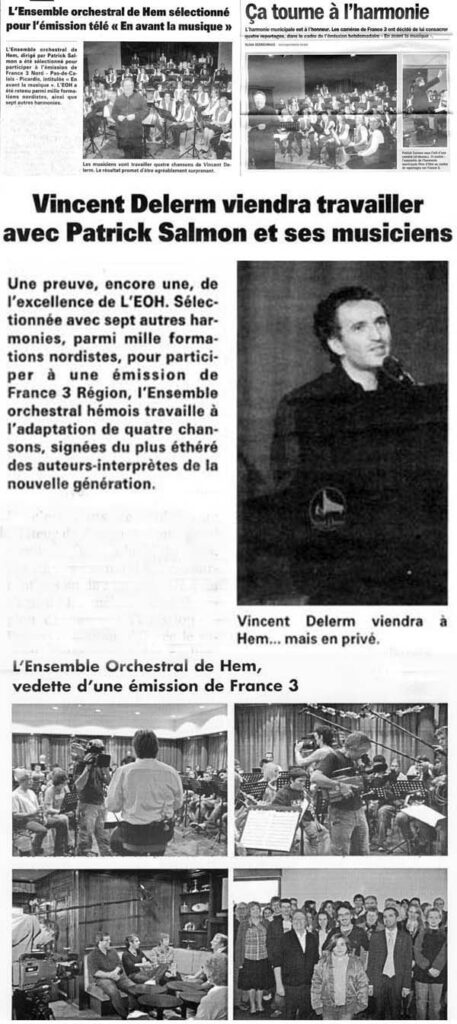 L’année suivante est l’occasion d’un concert champêtre organisé à l’extérieur, dans le parc de la mairie avec la participation de l’orchestre junior, et d’une nouvelle expérience européenne liée au jumelage à Wiehl. C’est en 2007 que les caméras de France 3 consacrent 4 reportages à la formation hémoise, dans le cadre de l’émission hebdomadaire « En avant la Musique ». A cette occasion Vincent Delerm vient travailler avec l’EOH.