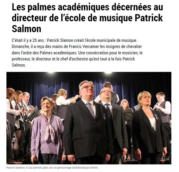 Les palmes académiques sont décernées 6 ans plus tard en 2017 à Patrick Salmon qui, après toutes ces années hyperactives, notamment à la tête de la Cantoria, quitte l’école pour une retraite bien méritée et laisse la place à Thomas Lehembre, en janvier 2021. Ce dernier reprend alors bien sûr également la direction de l’orchestre si cher à Patrick Salmon.