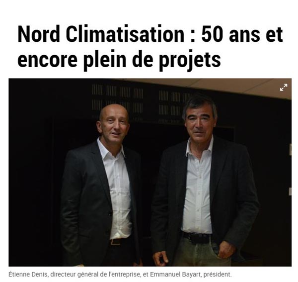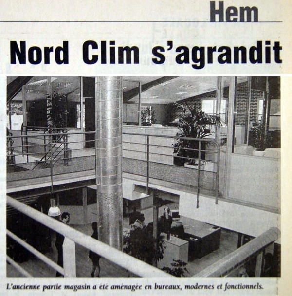 Huit ans après son ouverture, en 2000, l’entreprise hémoise, dirigée par Emmanuel Bayart, PDG, et Etienne Denis, directeur, occupe 55 salariés et s’agrandit. Nord Clim qui réalise des études et installations de climatisation, chauffage, ventilation, extraction et filtration pour les entreprises et les particuliers installe de nouveaux bureaux dans les anciens magasins et construit de nouveaux locaux pour la partie stockage.