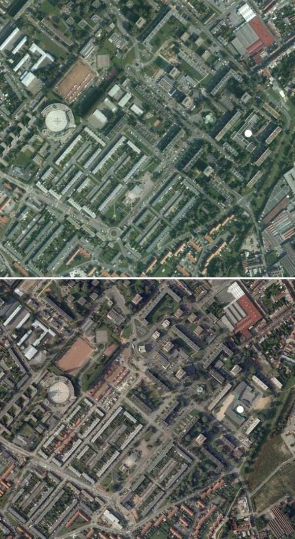 2006 est également l’année où l’exposition photo de Richard Baron est exposée sur les fenêtres de la résidence Schweitzer, sur le point d’être démolie. Par ailleurs, désertés par les écoliers , les locaux du groupe scolaire Longchamp vidés, nettoyés, déshabillés durant de longs mois peuvent être grignotés par deux pelleteuses. Les travaux de démolition en eux-mêmes durent moins de deux semaines. Peu à peu, les quatre bâtiments, les classes, le réfectoire, qui composaient cet ensemble scolaire disparaissent. C’est aussi cette année là que le collectif le Pélican est rénové et que le Tulipier et une partie du Charcot disparait.