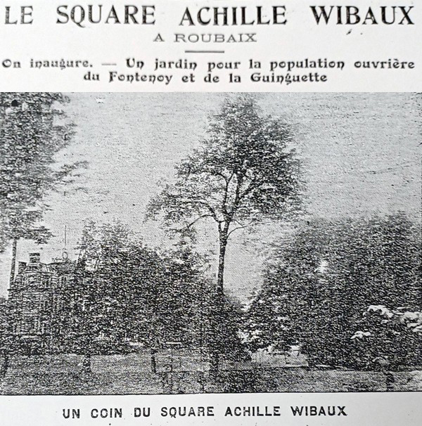 Achille Wibaux décède en 1906 et la ville de Roubaix rachète le parc de 11.000 m2. Le château devient une crèche municipale tandis que le parc privé devient un jardin public auquel on donne le nom de « Square Wibaux » du nom de la famille des anciens propriétaires. Quoi de mieux et de plus démocratique pour la municipalité que de créer un jardin ouvert au public dans ce quartier populaire du Fontenoy et de la Guinguette.