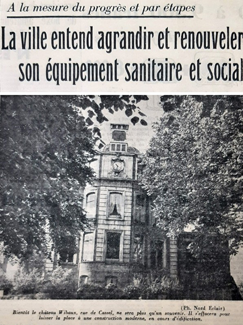 Les services sanitaires et sociaux de la ville sont parfaitement adaptés en cette année 1959, mais ce qui manque le plus c’est le manque de place. La municipalité envisage donc de raser le château Wibaux et de construire à la place, un Centre Sanitaire et Social.