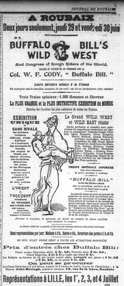 Une seule ombre au tableau. Le Journal de Roubaix du 5 Juillet, titre : « Une épidémie dans la cavalerie de Buffalo Bill. En effet, quatre chevaux ont été abattus car porteurs de la « Morve » maladie équine fortement contagieuse.
