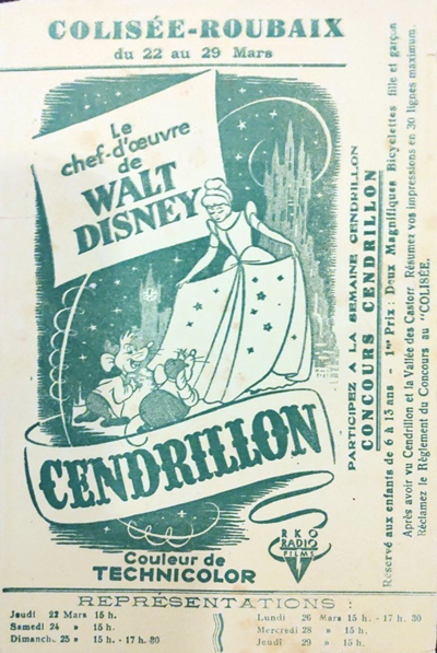 A la fin des années 1940 les dessins animés de Walt Disney ( Cendrillon ) arrivent sur ses écrans pour le plus grand bonheur des jeunes spectateurs