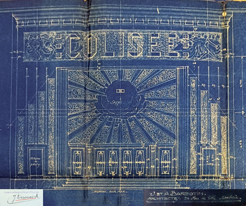 Finalement, l’option n’est pas retenue : la maison est détruite et Jean Deconinck construit le cinéma « Colisée » avec une façade plus moderne, dans le style Art-déco. Il s’investit pleinement dans son projet avec les mêmes architectes Barbotin père et fils, réalise des croquis sur sa planche à dessin, réfléchit aux moindres détails sur la qualité de construction, la technicité des appareils de projection, l’esthétique de la décoration etc. L’inauguration et l’ouverture du cinéma est programmée pour 1926.