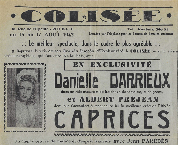 Le Colisée est certes une salle de cinéma, mais c’est aussi une salle de spectacle pour le music-hall ou des pièces de théâtre. De très nombreux chansonniers s’y succèdent : Tino Rossi, Maurice Chevalier, Fernandel et bien d’autres. Jean Deconinck peut ainsi approcher de près d’immenses vedettes talentueuses comme Joséphine Baker ou Arletty. Le succès du Colisée est colossal dans ce fourmillant quartier de l’Epeule