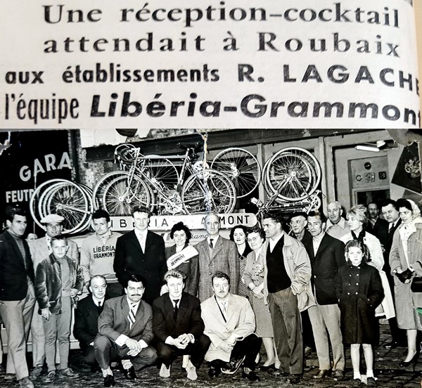 Leur fidèle fournisseur Grammont est d’ailleurs heureux d’amener une partie de l’équipe cycliste Libéria-Grammont, au magasin du 183 rue de Lannoy, lors du Paris Roubaix 1960.