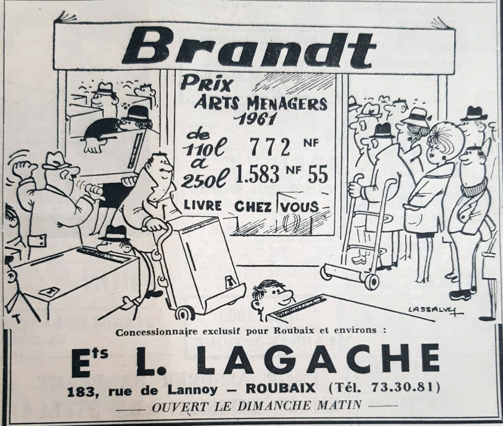 En 1961, Lucien et Lucette Lagache obtiennent le statut de dépositaire exclusif des produits Brandt sur la ville de Roubaix et environs. C’est encore l’occasion de développer leur affaire. Le couple embauche du personnel ; vendeur, livreur, technicien SAV.
