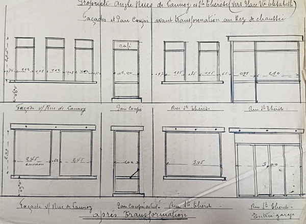 Par l’entreprise de Désiré Delfosse rue de la Potennerie, il fait transformer complètement la façade, et fait aménager une entrée de garage.