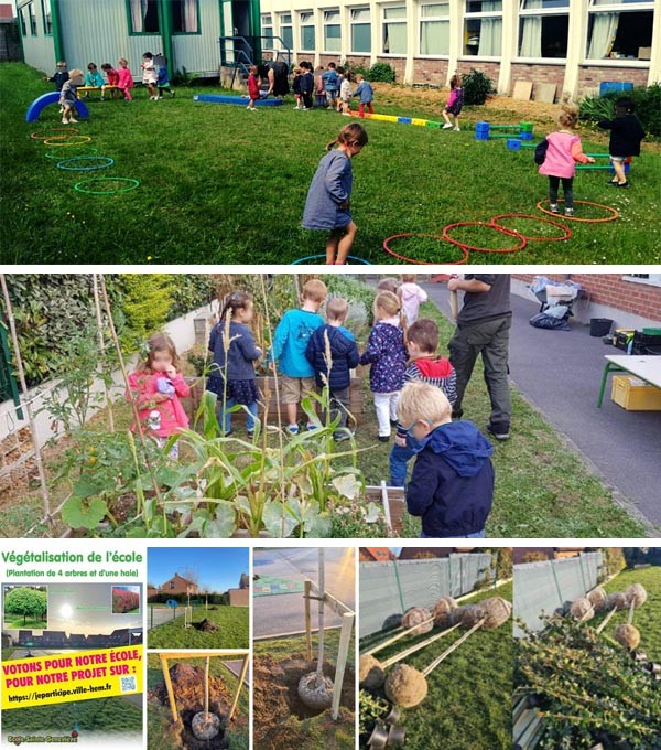 Ce sont les années 2020 qui voient la végétalisation de l’école se poursuivre avec la plantation de quatre arbres et d’une haie même si les travaux de jardinage font déjà partie des activités extra scolaires et si la plantation de la pelouse a déjà permis de faire des exercices de motricité à l’extérieur.