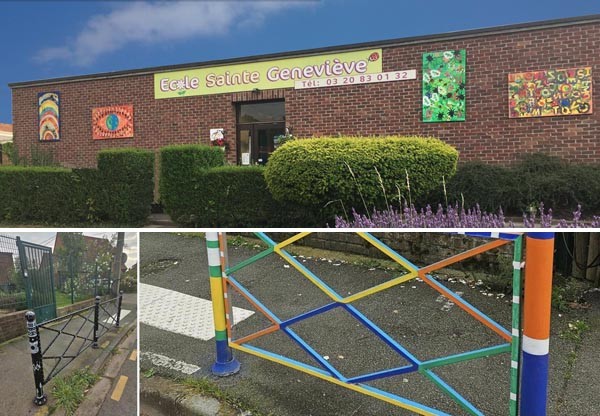 Enfin Sainte Geneviève a l’idée d’orner sa façade de quelques panneaux décoratifs, une manière d’égayer le quartier qui plait à la mairie de Hem, laquelle lance alors un projet consistant à apposer une fresque à l’entrée des 6 groupes scolaires de la ville. Dans ce cadre, la municipalité apporte sa touche décorative aux potelets installés devant l’école Sainte Geneviève.