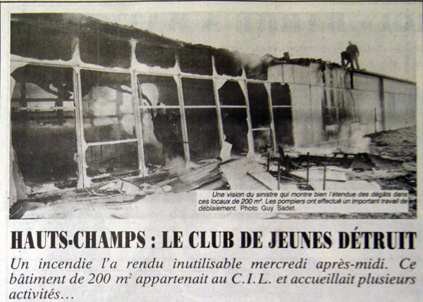 La démolition de la grande barre n’a pas miraculeusement transformé le quartier en un coup de baguette magique. Ainsi, un an plus tard, en 1986, le club des jeunes, un bâtiment de 200 mètres carrés appartenant au CIL, est détruit par un incendie, dont l’origine criminelle ne semble faire aucun doute, dans la rue Villemin.