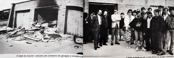 Puis en 1988, soit 3 ans plus tard, une opération « garages » est décidée par la municipalité dans le quartier, sur deux batteries d’une centaine de garages situés entre les rues Beaujon et Larrey. Il s’agit de faire réhabiliter par des « tucistes » des garages inoccupés et transformés en dépôts d’immondices (voitures hors d’usage, caddies abandonnés, fonds de greniers et déchets de jardin).