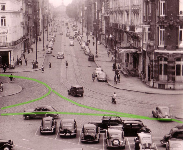 Plus tard, après la fusion avec la ligne D menant à Mouvaux on établira un branchement des voies en triangle entre la rue Neuve, celle du Maréchal Sarrail et la station de la Grand Place située devant l’église. La photo nous illustre ce branchement.