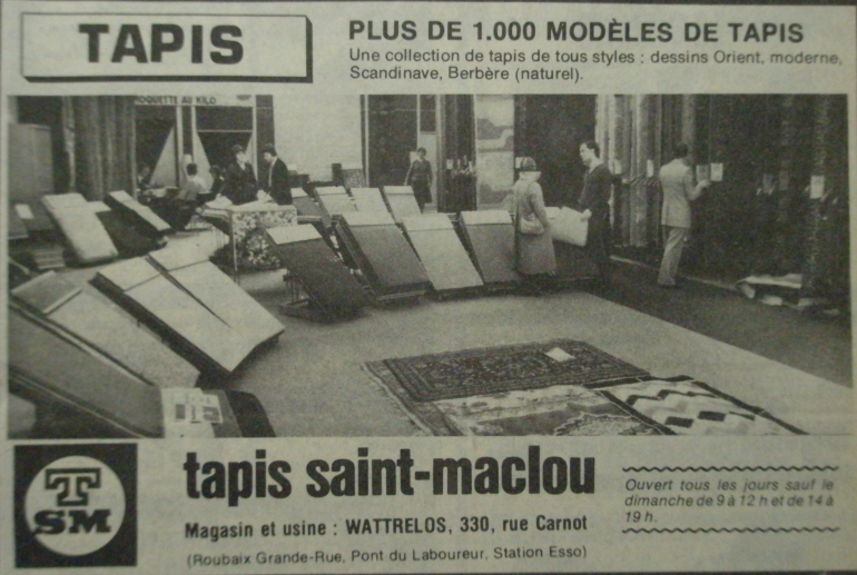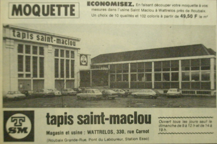 En 1966, un million de francs sont investis en matériel. C’est le véritable début des Tapis Saint-Maclou qui sont installés rue du Pétrole à Wattrelos dans l’ancienne usine de la Compagnie Générale des textiles Roubaisiens (ex Allart Rousseau). Le voici donc fabricant et il en fait l’argument publicitaire de sa société : vente directe de l’usine au particulier.